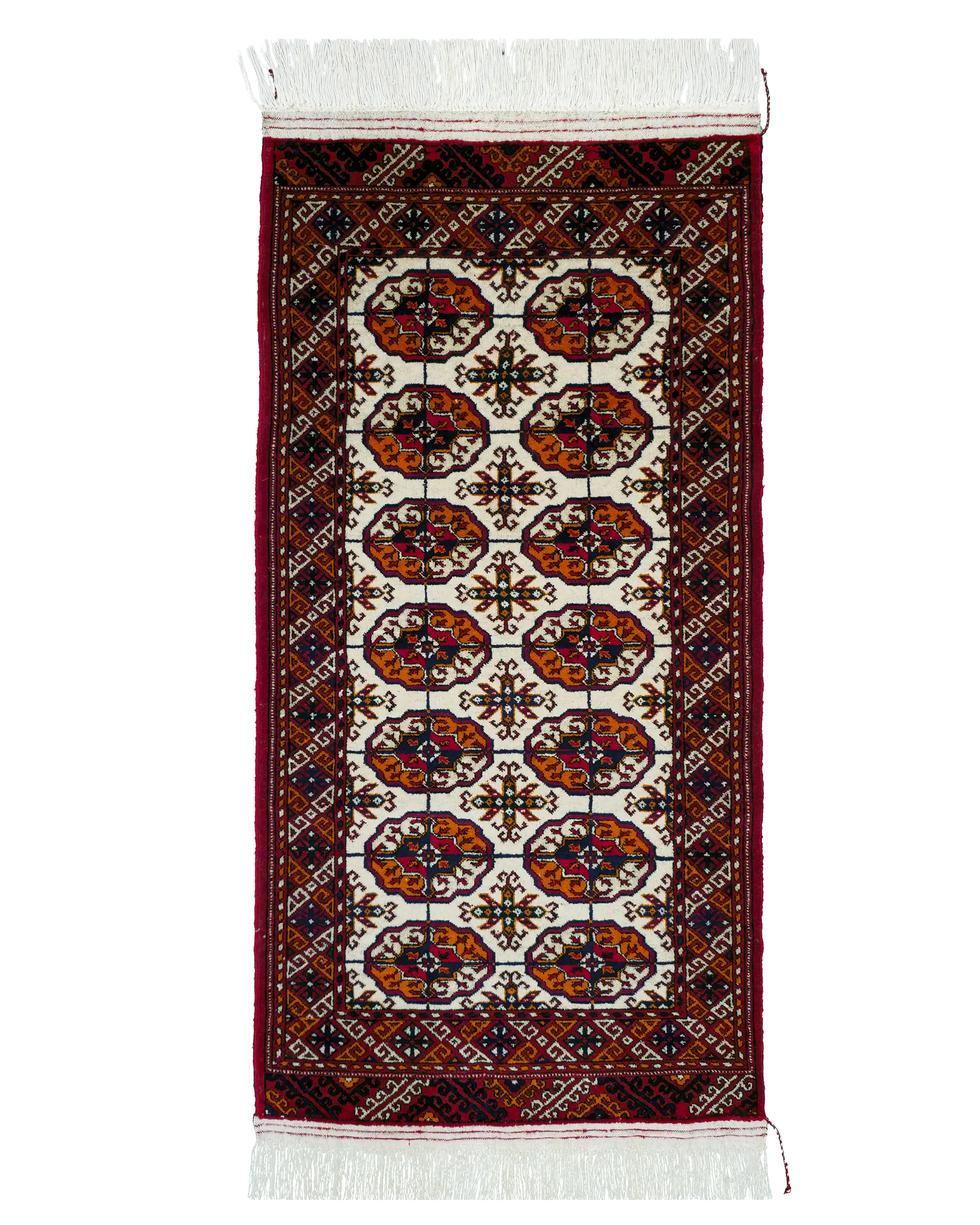 This Persian Rug and Turkoman Rug (70 x 140 cm / 2'3" x 4'6") is a hand-knotted wool masterpiece designed for buyers seeking to buy a Persian rug, discover an authentic Turkoman rug, or add a luxury wool meditation mat to their personal space. Woven in Turkmenistan’s Dashoguz province by a single artisan over 280 hours, it features calming beige tones, traditional tribal geometry, and a refined 169 KPSI density.